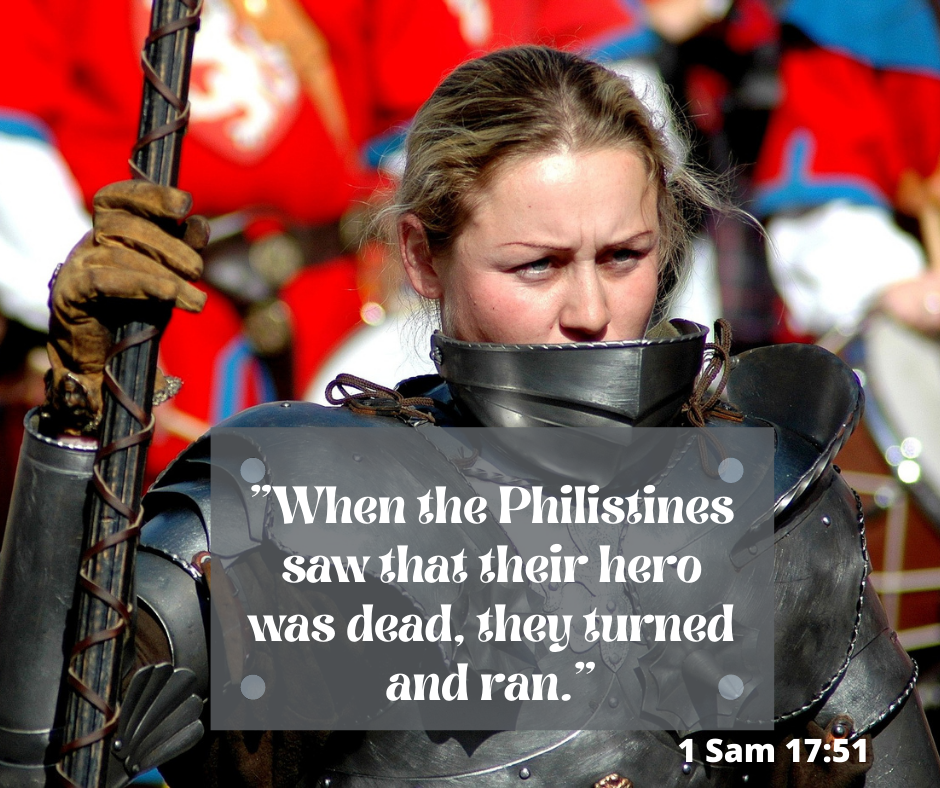 1 Sam 17:51 says this; “David ran and stood over him. He took hold of the Philistine’s sword and drew it from the sheath. After he killed him, he cut off his head with the sword. When the Philistines saw that their hero was dead, they turned and ran.”